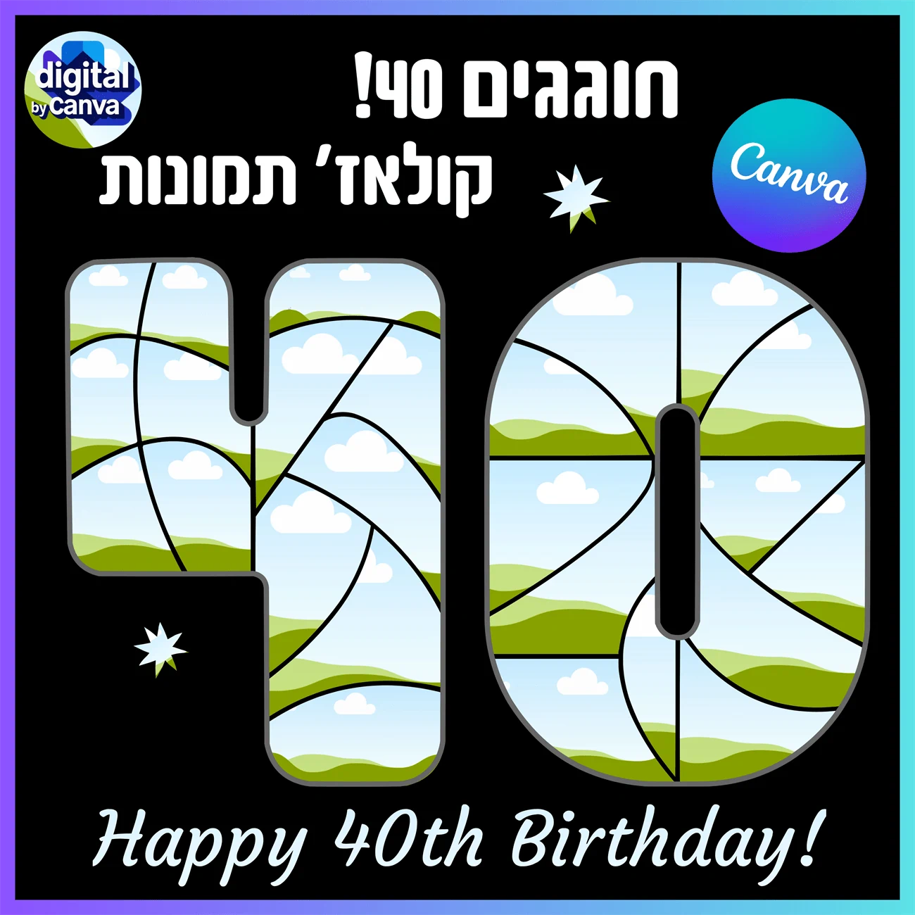 תבנית מעוצבת לעריכה אישית בקנבה - יוצרים קולאז' תמונות מהמם בצורת המספר 40!