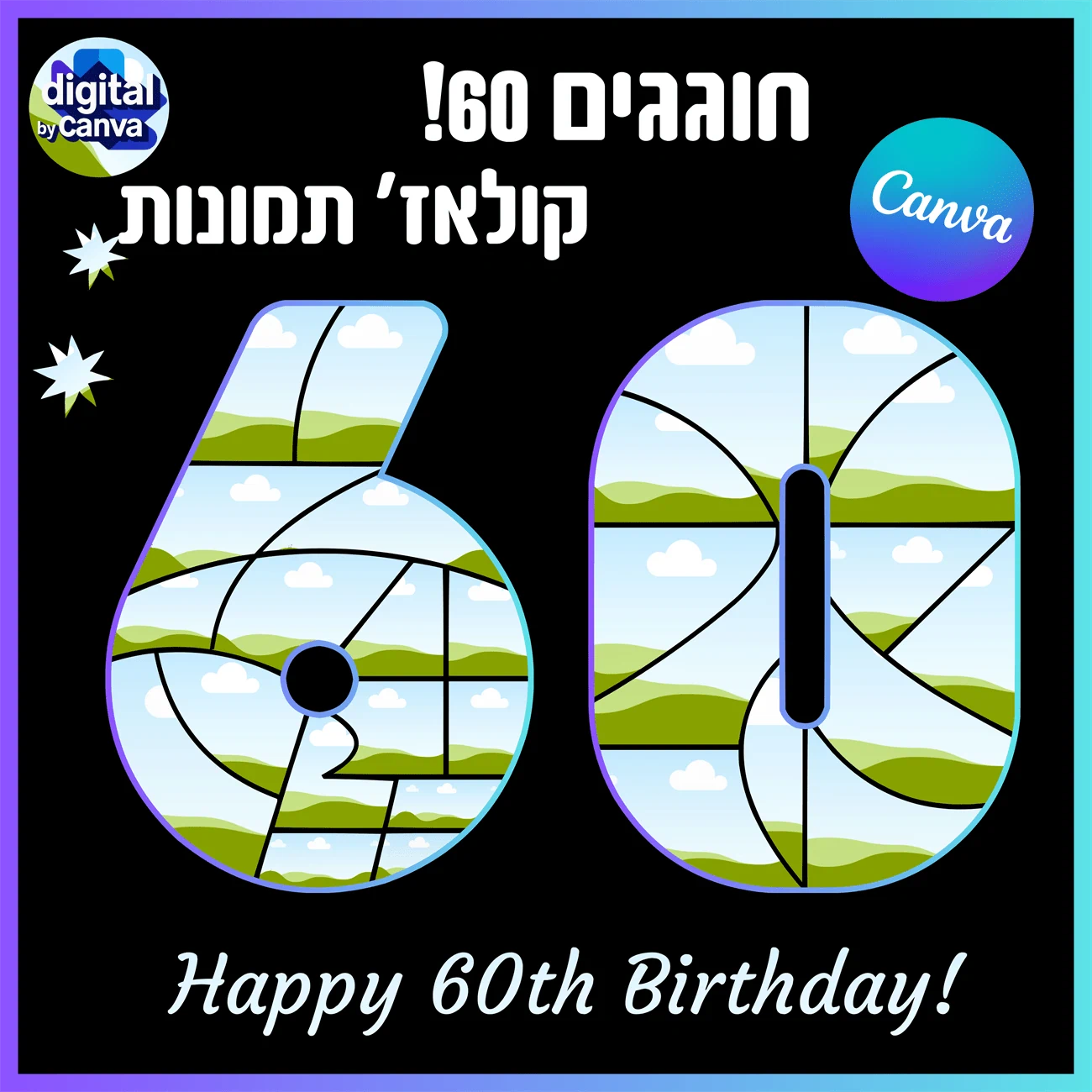 תבנית מעוצבת לעריכה אישית בקנבה - יוצרים קולאז' תמונות מהמם בצורת המספר 60!